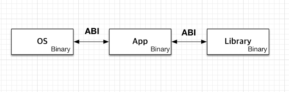 - ABI에는 함수를 어떻게 호출할지, 메모리에 데이터를 어떻게 표현할지, 메타데이터를 어디에 놓고 어떻게 접근할지 등을 정의OS-App-Library간 상호작용